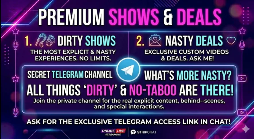 Some things are too hot for the main room... 🤫 Join my private Telegram channel to see the most explicit content you won't find anywhere else. Backstage, taboo-free interactions and my wildest and "dirtiest" shows are waiting for you. Get your exclusive access now! 💎